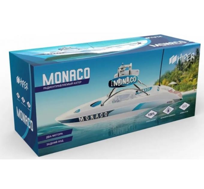 Комплект - Радиоуправляемый катер HIPER Monaco Аккумулятор Ni-CD 4,8В 700мАч; Кабель USB для зарядки аккумулятора; Пульт управления ; Крона 9В для передатчика ; Инструкция /